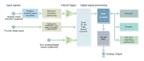 Main Features - Measurement of frequency, RPM, Km/h, Rad/s, °/s, l/h, EU/s… - High accuracy and reliability - Signal processing at each incoming period - Fast measurement response - Analog and digital (TTL, on/off…) inputs - Fully programmable measurement set-up - 16 bit DAC output |