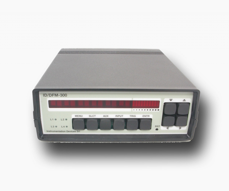 gle/DFM 300 is a high precision measurement unit for low and medium frequencies and rates in engineering units. It determines frequency evaluating each period of the incoming signal and taking its inverse instead of counting pulses over a specified time interval as in conventional meters. This method allows much greater accuracy and faster measurement update that grows proportionally to the input frequency. For example, in order to obtain a resolution of 0.1Hz at the signal frequency of 100Hz, standard meters need to compute over 1000 periods (that means 10s of acquisition), while GLE/DFM 300 achieves 0.02Hz in 10ms only. Moreover in this way it is possible to evaluate any fast frequency fluctuations, which are necessarily averaged out in conventional meters or in analog F/V converters.
