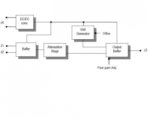 gle/VIDEO-AMP/100-B unit is made by the following functional blocks. · A DC/DC converter provides a stable and ground isolated +/-12V internal power supply. · An OP amplifier stage couples the video input line. The input can have a 75 Ohm impedance or high impedance. · An attenuation stage provides signal attenuation without perturbing the input signal. · A high stability voltage generator provides a stable and clean reference for the offset regulation of the output signal. · An output buffer mixes the attenuated input signal with the voltage reference and allows the fine gain correction. Output impedance is 75 Ohm.